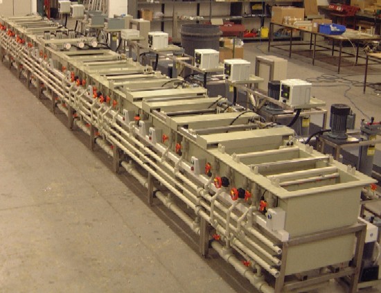 A medium sized line for nickel and gold plating, the tanks, stainless steel frames, and plumbing work were all supplied by